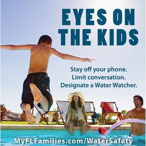 "Eyes on the Kids" encourages parents practice the four water safety rules: